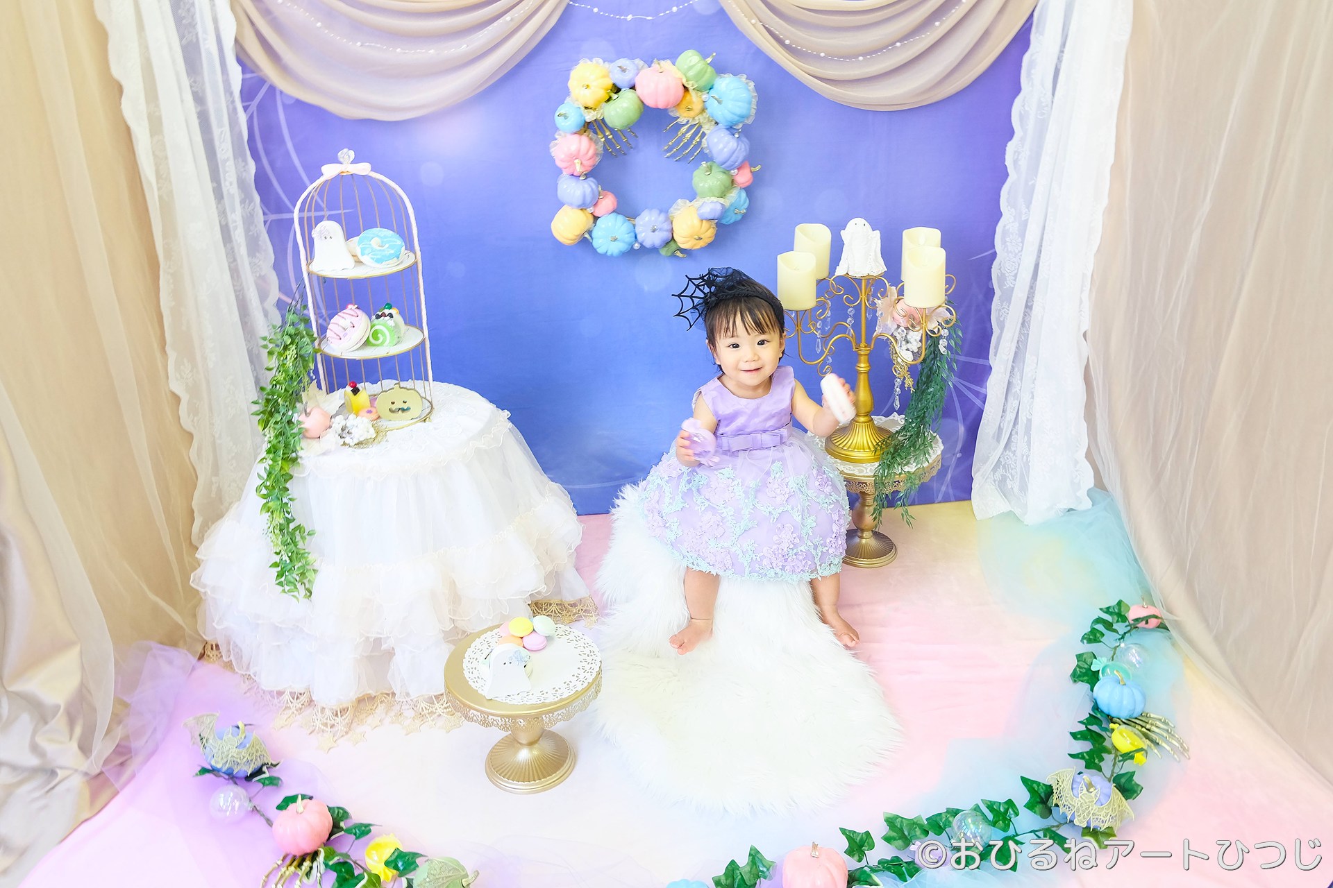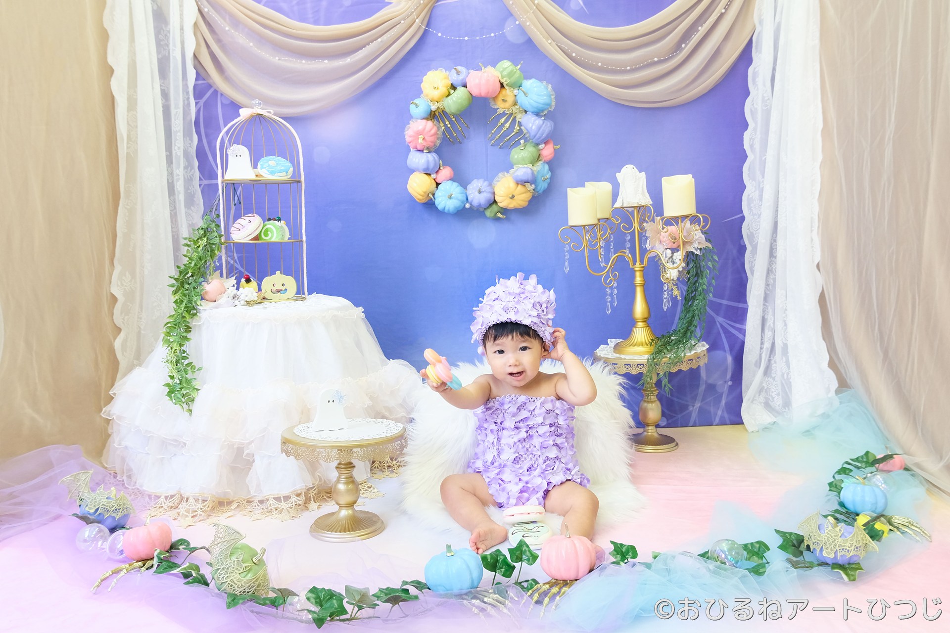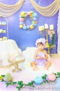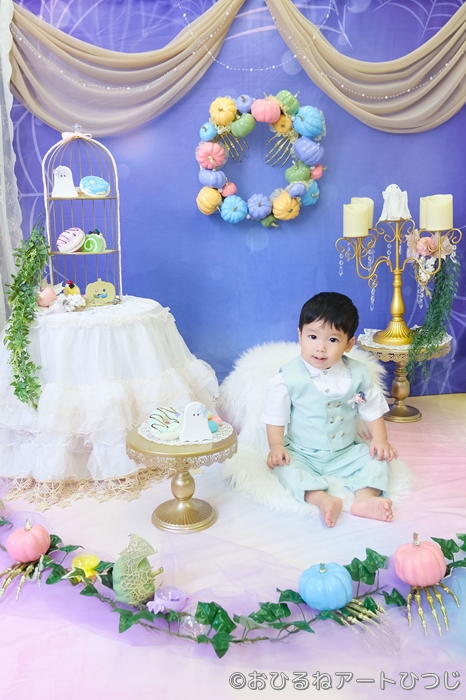 パステル調の明るいハロウィンをテーマにした「おすわりアート」をご用意しました♪