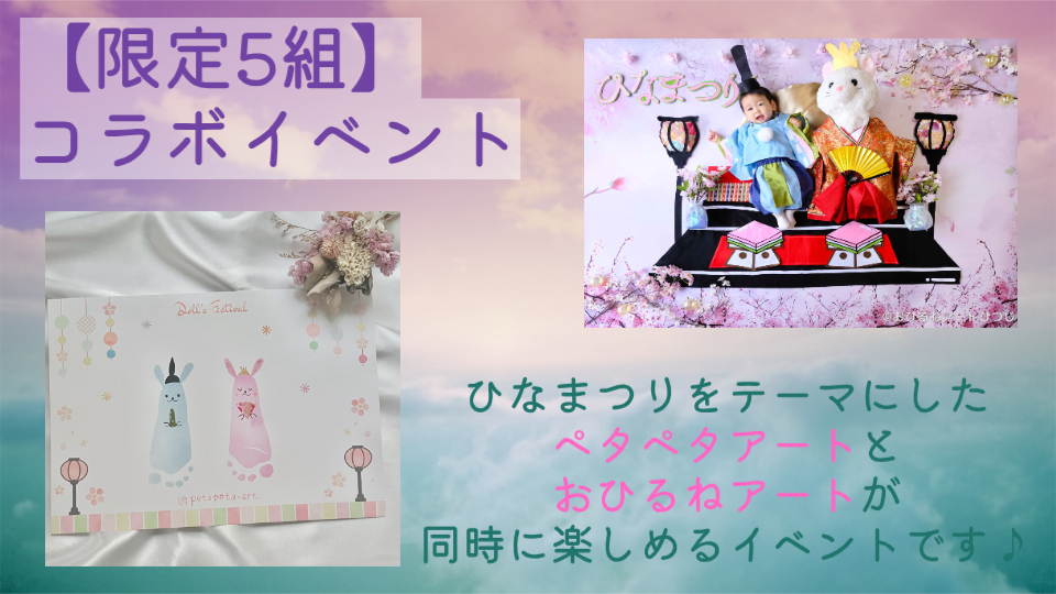 おひるねアートは「桃の節句ひなまつり2026」アートを、ペタペタアートは「ひなまつりペタペタアート」をご用意します。